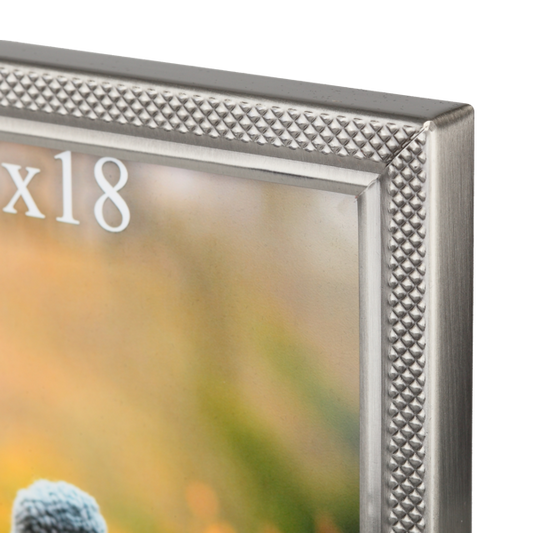 Srebrna, metalowa ramka 10x15 z symetrycznym wzorem