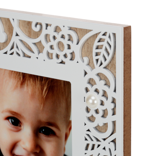 Drewniana ramka 10x15 zdobiona wyciętym wzorem - ażurowe kwiaty