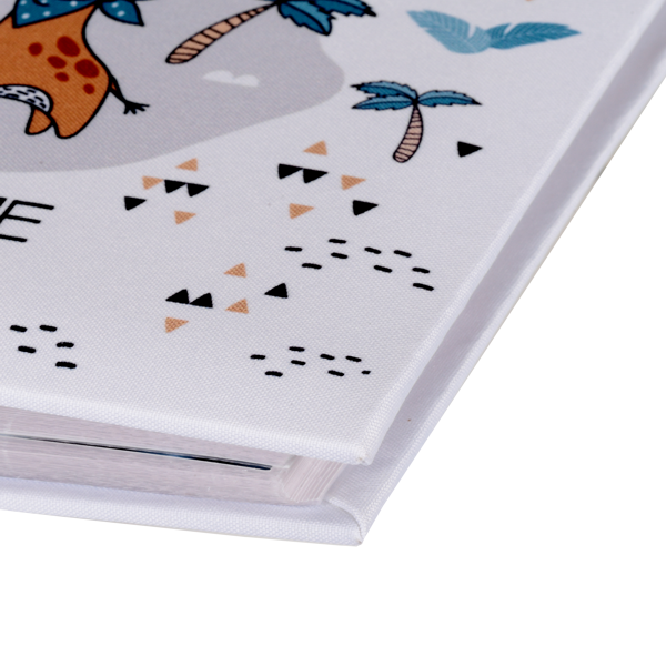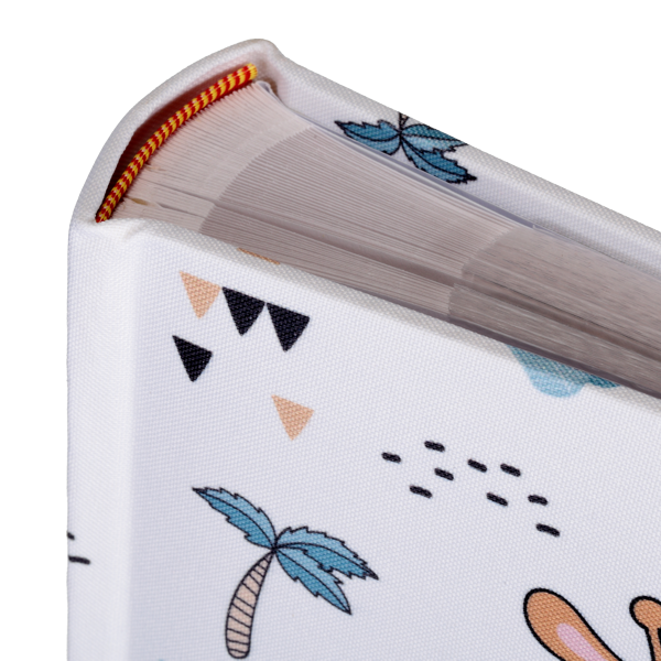 Okładka w kolorze białym wykonana z tkaniny z nadrukiem