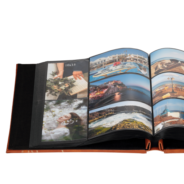 Elegancki, nitowany album kieszeniowy, który pomieści aż 500 zdjęć w formacie 10x15 cm. Na okładce znajduje się tłoczony obrazek ze złoceniami – idealny do zdjęć z fantastycznych podróży czy do zdjęć obrazujących rodzinne wspomnienia. Album jest solidnie wykonany i wyjątkowo pojemny, dzięki czemu pomieści wiele cennych chwil w jednym miejscu.