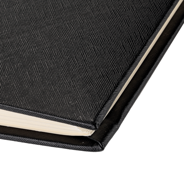 - Okładka wykonana z czarnej ekologicznej skóry ze srebrnym tłoczeniem