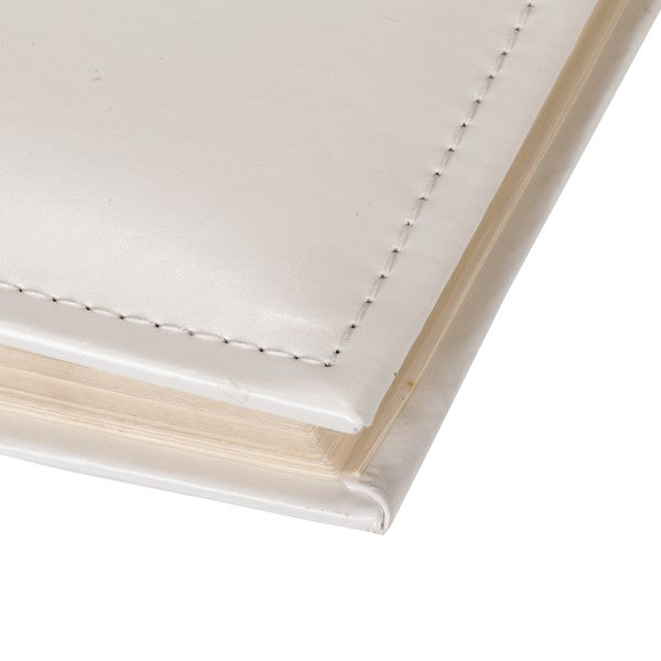Twarda, gładka oprawa w klasycznym białym kolorze wykonana ze skóry ekologicznej z eleganckim obszyciem