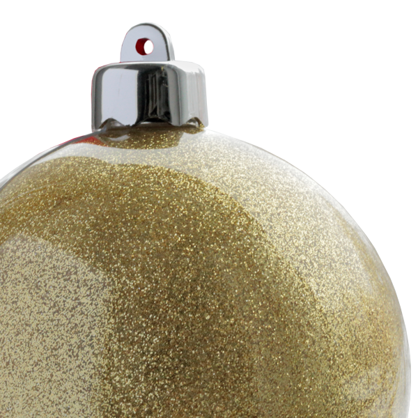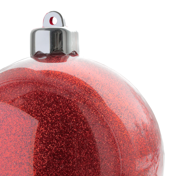 - W modelu 10x10 cm brokat znajduje się wewnątrz bombki