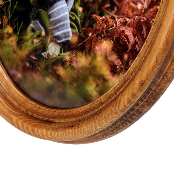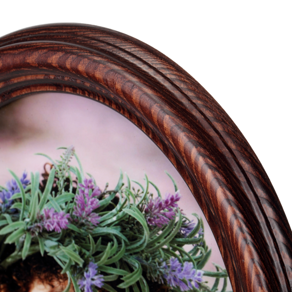 Ramka wykonana jest z wysokiej jakości drewna, starannie szlifowanego i lakierowanego, co zapewnia jej trwałość i estetyczny wygląd przez długie lata. Owalny kształt wprowadza nutę nostalgii i doskonale komponuje się zarówno z klasycznymi, jak i nowoczesnymi aranżacjami.